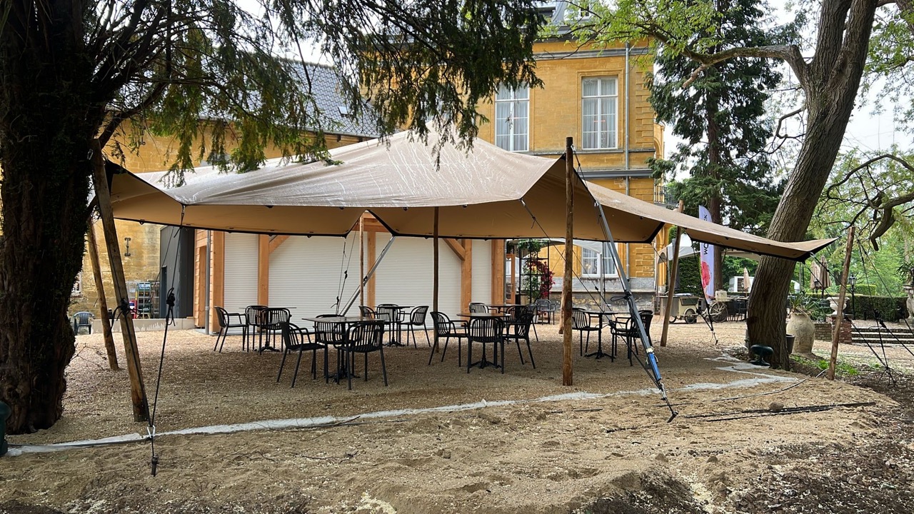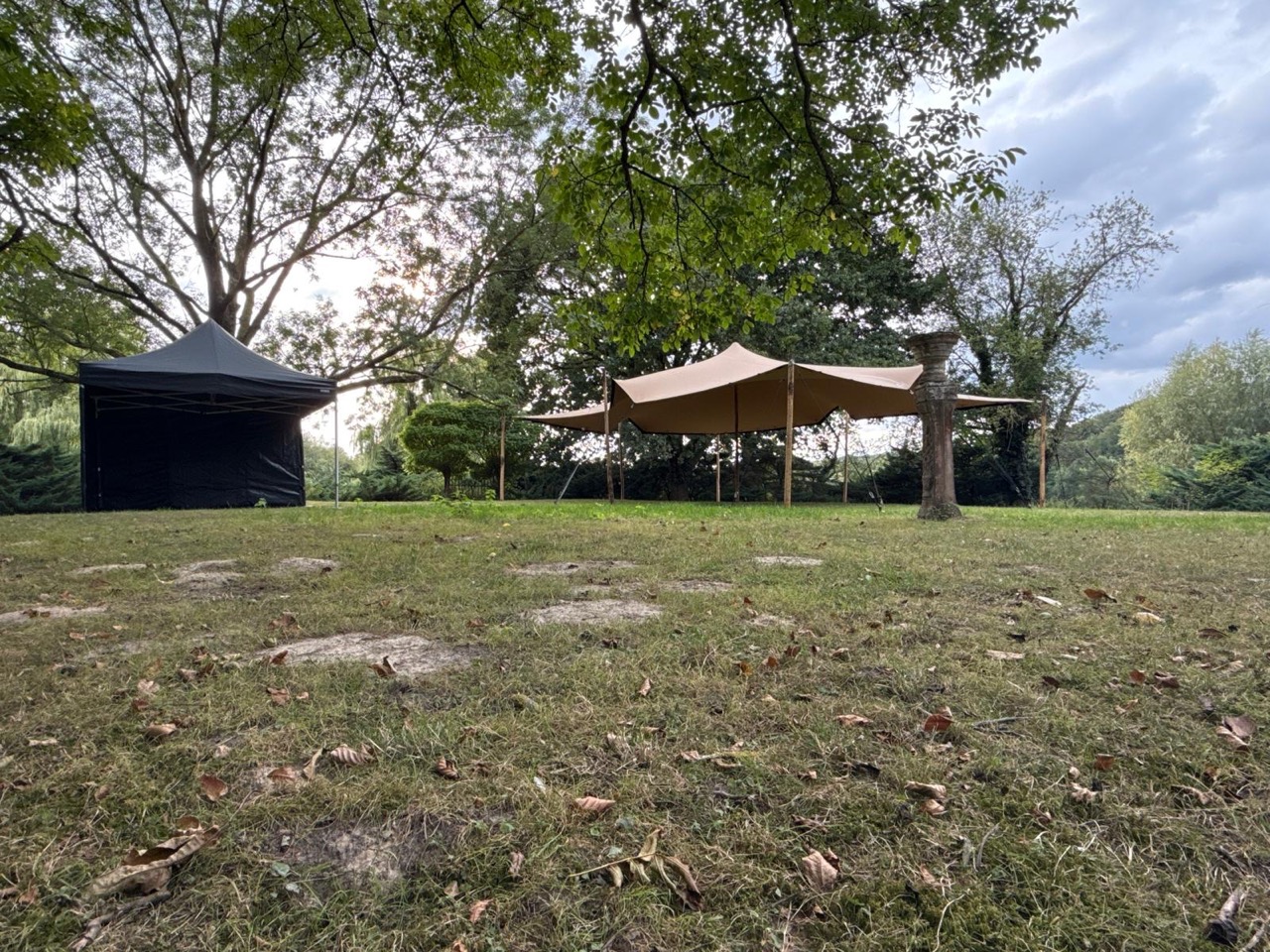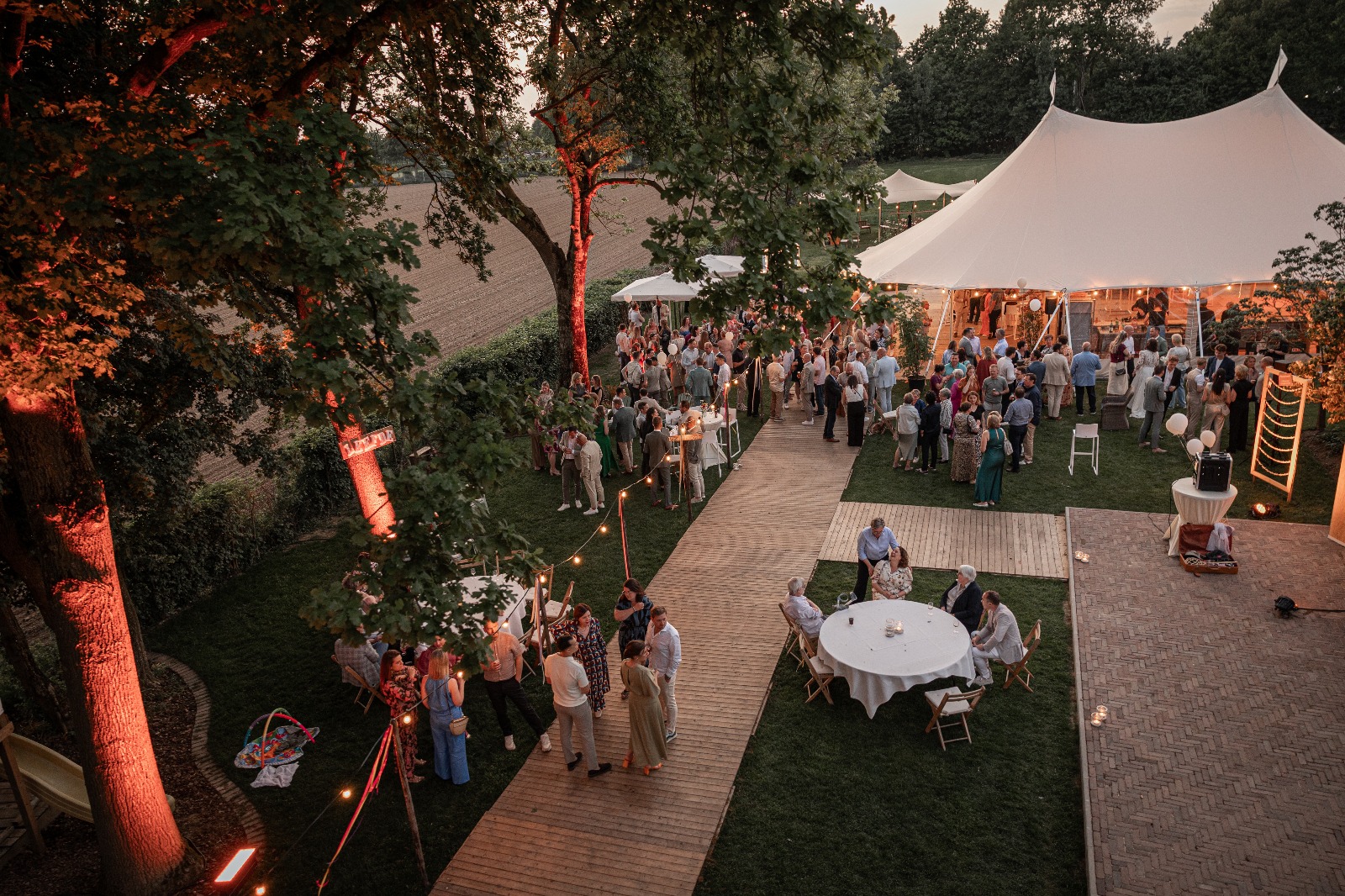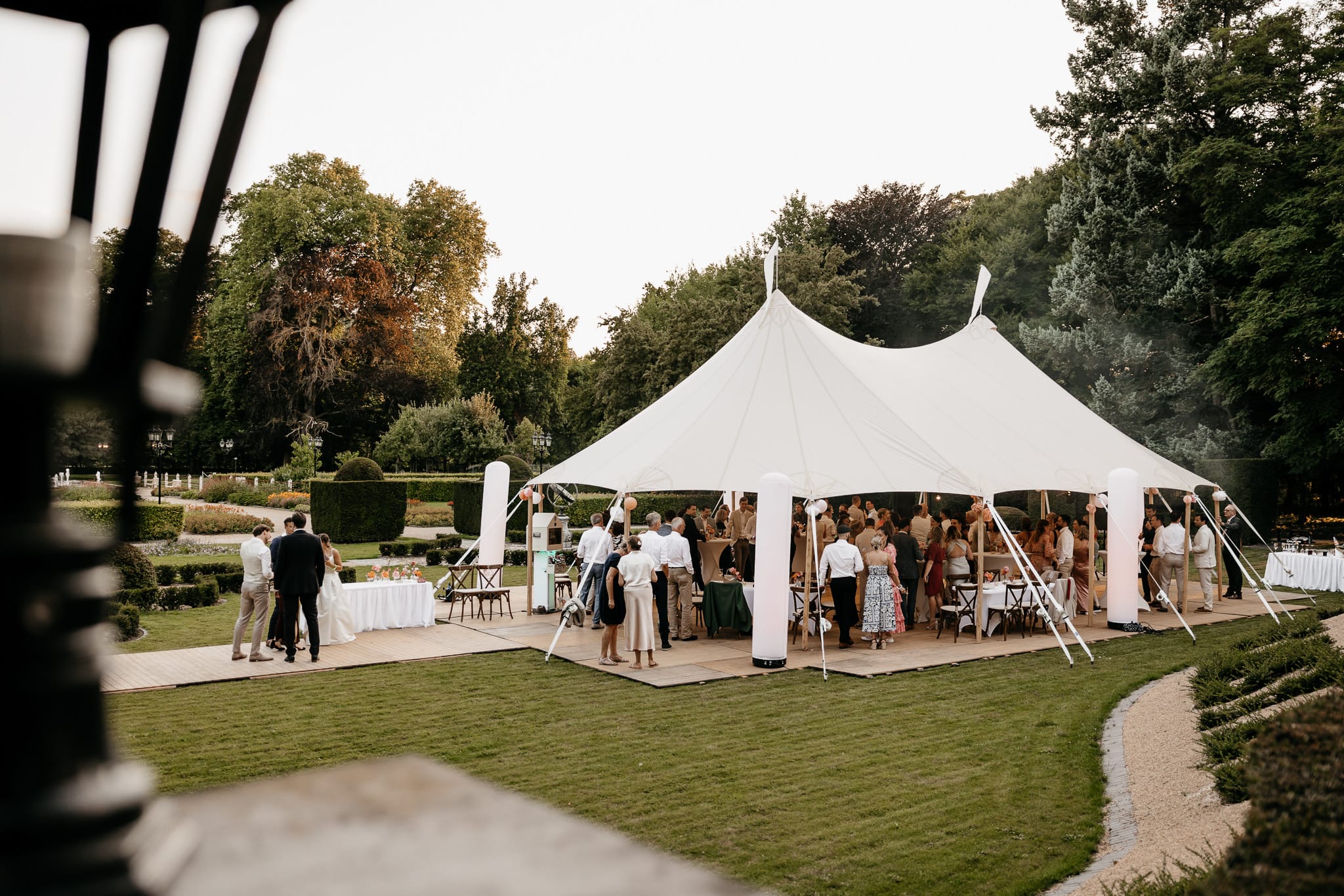 Diese Zelte sind ideal für Hochzeiten, Abendessen, Feierlichkeiten und hochwertige Firmenveranstaltungen. Dank des offenen, luftigen Designs entsteht eine wunderschöne Verbindung zur Umgebung – perfekt für Locations in der Natur, auf Landgütern oder in einem großzügigen Garten. Wenn der Abend hereinbricht, schaffen Lichterketten und Uplights eine magische Atmosphäre unter dem weichen Zeltdach.