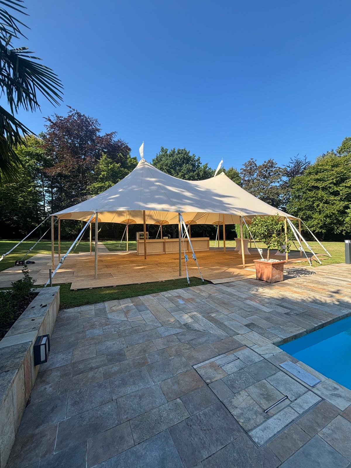 Mit mehreren verfügbaren Größen bieten die Sailcloth-Zelte Platz für intime Zusammenkünfte ebenso wie für größere Veranstaltungen. Ein zeitloser Klassiker, der jeden Ort in eine unvergessliche Kulisse verwandelt.